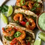Quick and flavorful tacos made with shrimp, bell peppers, and fajita seasoning, cooked in an air fryer for a convenient weeknight meal.