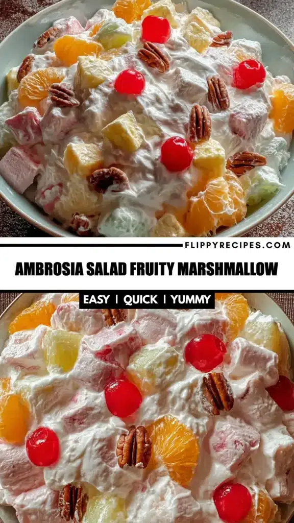 I encourage you to try making this Ambrosia Salad Fruity Marshmallow in your own kitchen. Whether it’s for a holiday celebration, a summer picnic, or simply a weeknight dinner, this recipe is sure to bring smiles and satisfaction to your family. Don’t hesitate to put your own spin on it—experiment with different fruits or add a personal touch that reflects your family’s tastes.
