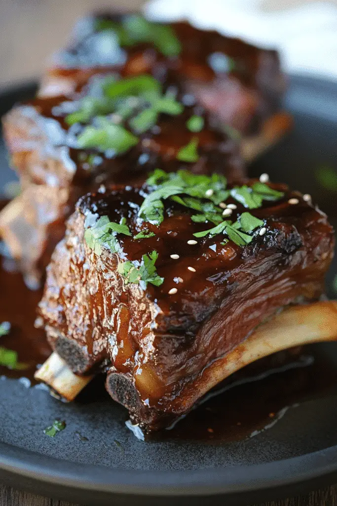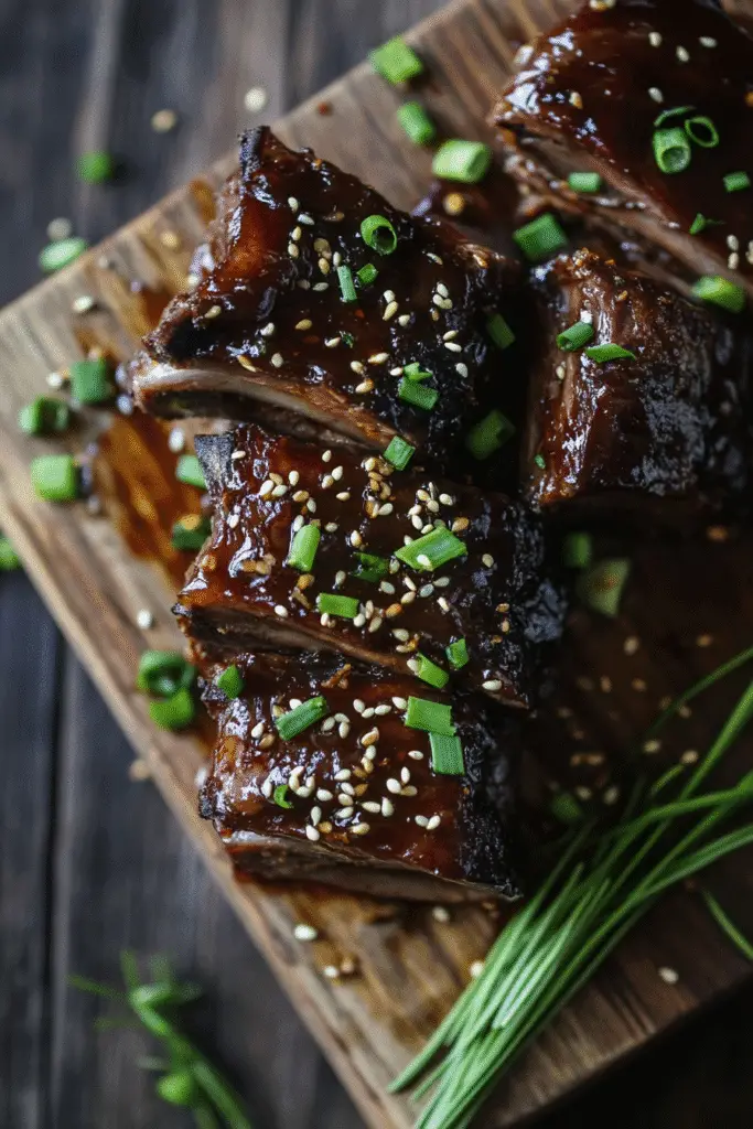 - Garnish Generously: Don’t skip the garnishes! Fresh green onions and sesame seeds not only add a pop of color but also enhance the overall flavor and presentation of your Asian Beef Short Ribs.