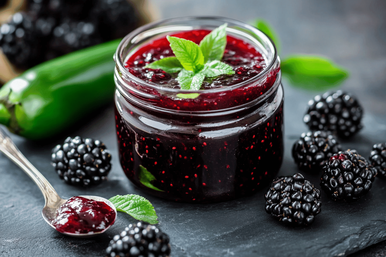 A sweet and spicy small-batch jam made with ripe blackberries, fresh jalapeños, lemon juice, and sugar. Perfect for toast, cheese boards, or as a glaze for meats.