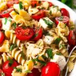 Colorful Caprese Pasta Salad brings together the classic Italian flavors of Caprese salad and the hearty, satisfying texture of pasta. Originating from the beautiful Island of Capri, the traditional Caprese salad showcases tomatoes, mozzarella, and basil, reflecting the colors of the Italian flag. This version celebrates those flavors in a delightful new form, making it easier to share and more filling.
