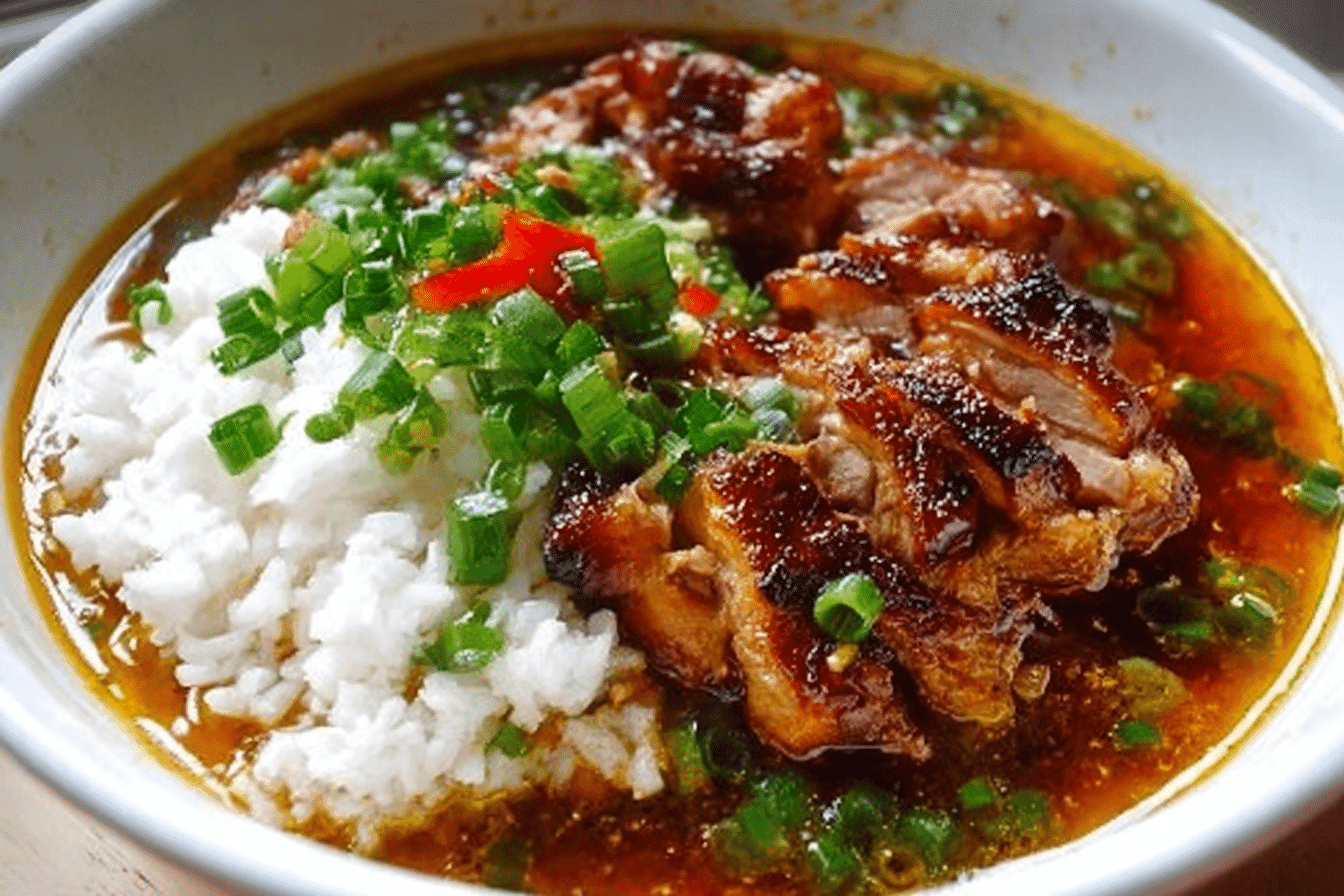 Caramelised Soy Chicken in Garlic Ginger Broth with Rice is one of those dishes that stays in your soul. It’s humble. It’s bold. It’s everything good in a bowl. From my kitchen to yours—this one’s a keeper.
