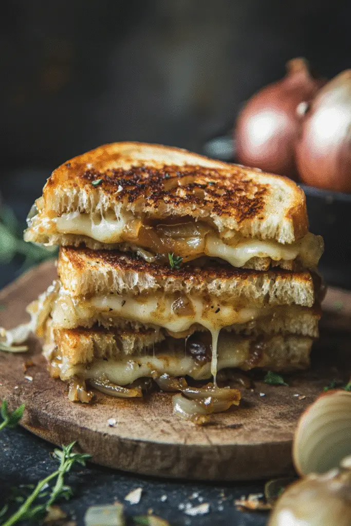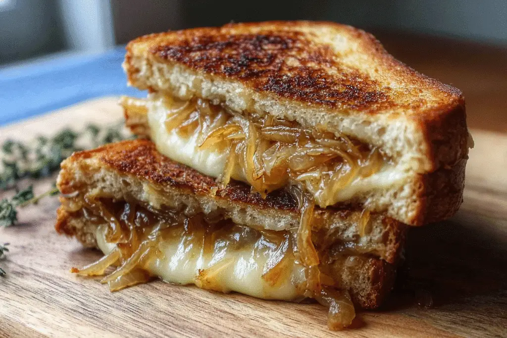 There’s something magical about the aroma of onions slowly caramelizing in a warm skillet — the kind of smell that turns an ordinary afternoon into a cozy memory. Pair that sweetness with gooey, melted cheese pressed between two buttery slices of golden bread, and you’ve got more than a meal — you’ve got comfort in its purest form.