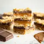 Delicious buttery bars with chocolate chips and caramel, perfect for sharing with family and friends.