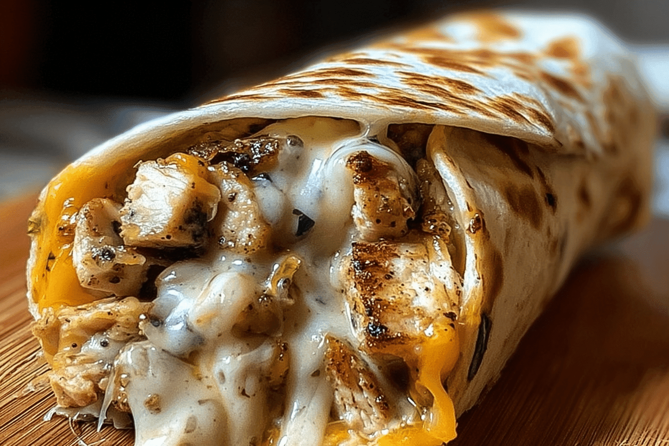 This wrap is all about layers of flavor: slow-cooked chicken (or rotisserie leftovers), a quick garlic butter sauce, your favorite melting cheese, and optional extras like sautéed onions, baby spinach, or roasted bell peppers. All wrapped up and crisped until golden.