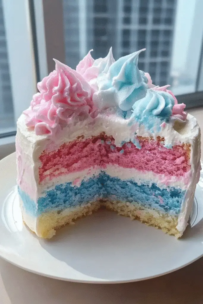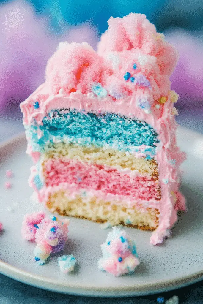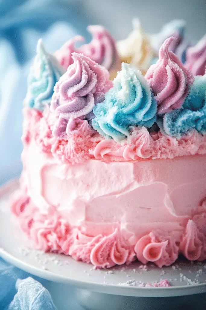 A delightful and whimsical dessert that captures the essence of cotton candy in cake form.