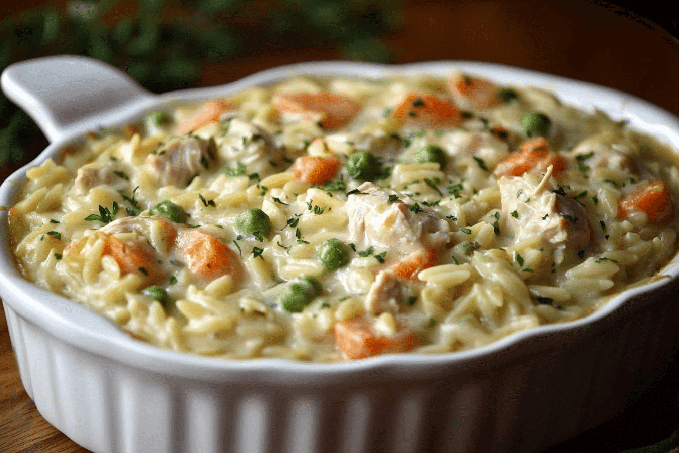 Keywords: creamy chicken pot pie orzo, chicken pasta dinner, one-pan chicken recipe