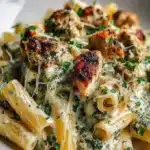 A heartwarming blend of tender chicken, creamy sauce, and vibrant pasta that captures the essence of Italian rustic cooking.