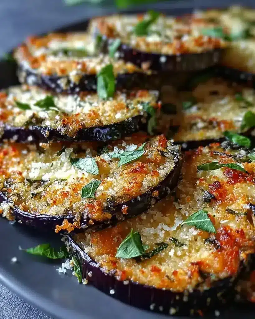 A flavorful and healthy baked eggplant dish that combines crispiness and tenderness for a delightful culinary experience.