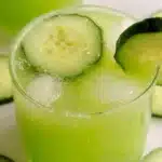 A refreshing drink made with cucumber, lime juice, and water, perfect for quenching thirst on hot days.