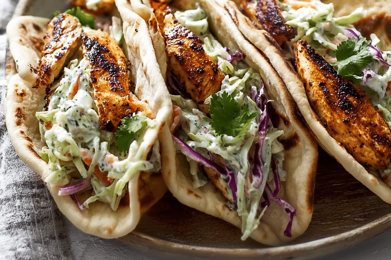 Slice chicken. Load up warm pitas with slaw, chicken, and any extras you like—feta, pickled onions, a splash of hot sauce.