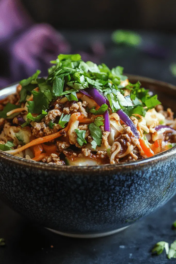 Perfect for weeknight dinners when time is of the essence, this dish also shines during family gatherings or casual celebrations. It’s a fantastic option for meal prep, allowing you to whip up a batch ahead of time for those hectic days when cooking feels like a chore. Whenever you crave a comforting yet exciting meal, Egg Roll in a Bowl is ready to deliver!