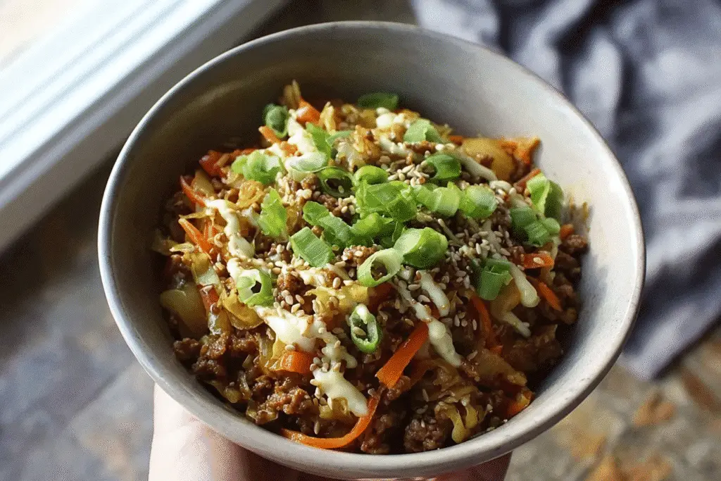 - Serve hot: Dish out the Egg Roll in a Bowl while it’s steaming, garnishing with extra green onions if desired. Enjoy the delightful crunch and savory goodness!
