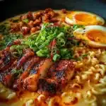 Fiery Chicken Ramen is a tantalizing fusion of flavors and textures that brings together succulent chicken, fresh vegetables, and rich broth. This dish is deeply rooted in Japanese cuisine, where ramen is more than just food—it’s a cultural experience. Growing up, I loved exploring local ramen shops, each offering a unique twist on this beloved classic.