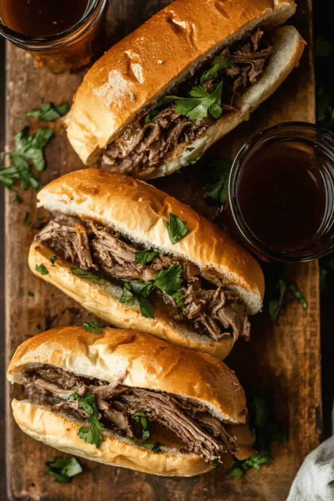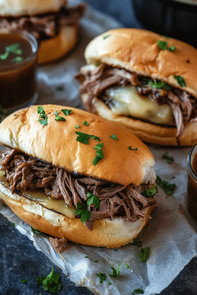 French Dip Sandwiches are ideal for weeknight dinners when you need something comforting yet easy to prepare. They also shine at celebrations, such as game day or family gatherings, where everyone can enjoy a delicious, hands-on meal. Whether it’s a cozy night in or a festive occasion, these sandwiches are sure to please!