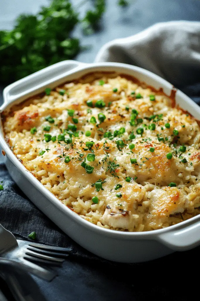 This recipe reflects the global influence of comfort food, combining the essence of French cuisine with the practicality of a baked dish. The creamy rice acts as a canvas, soaking up the flavors of the French onion soup while providing a satisfying base. The tender chicken adds protein, making it a well-rounded meal that appeals to both children and adults alike.