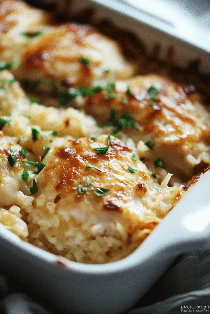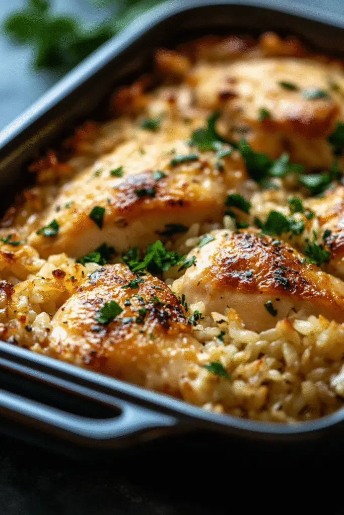 Discover the cozy flavors of this heartwarming French onion chicken rice bake that will elevate your dinner game!