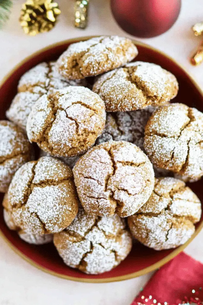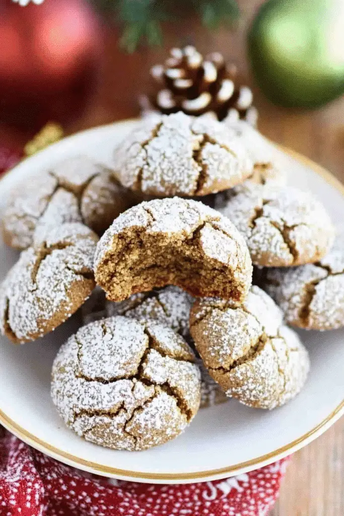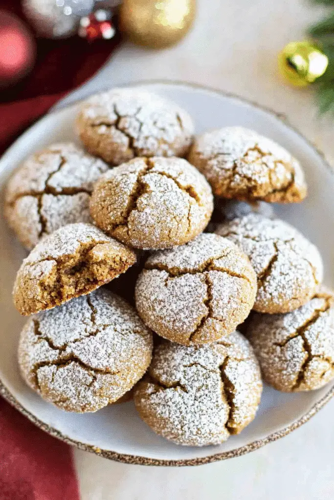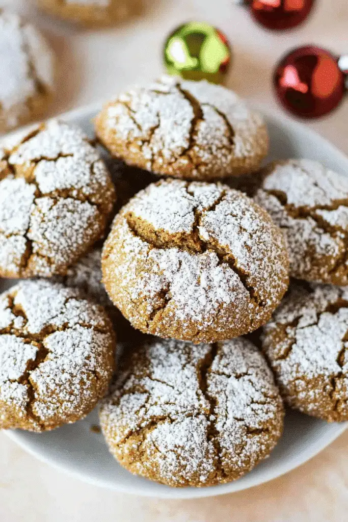 - Roll in Powdered Sugar Twice: For an extra snowy finish, roll your cookie dough balls in powdered sugar before and after baking. This double coating creates a stunning contrast against the dark gingerbread and enhances the crinkle effect.