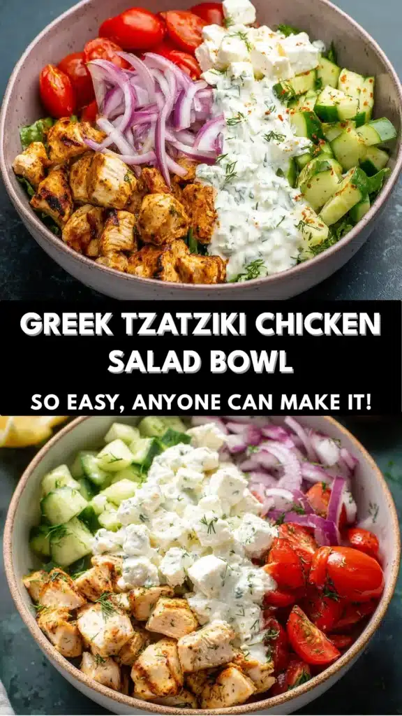 Whether it’s a quick weeknight dinner, a light lunch, or a dish for a family gathering, this salad bowl fits perfectly into any occasion. It’s also a fantastic option for summer picnics or potlucks, where its refreshing taste can shine. Whenever you need a meal that’s both satisfying and easy to prepare, the Greek Tzatziki Chicken Salad Bowl is your go-to choice!