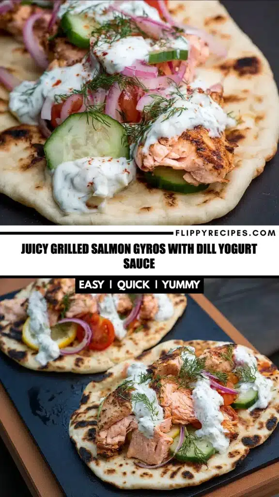 • Health benefits of salmon: Packed with omega-3 fatty acids, salmon is not only delicious but also supports heart health and brain function, making these gyros a nutritious choice.