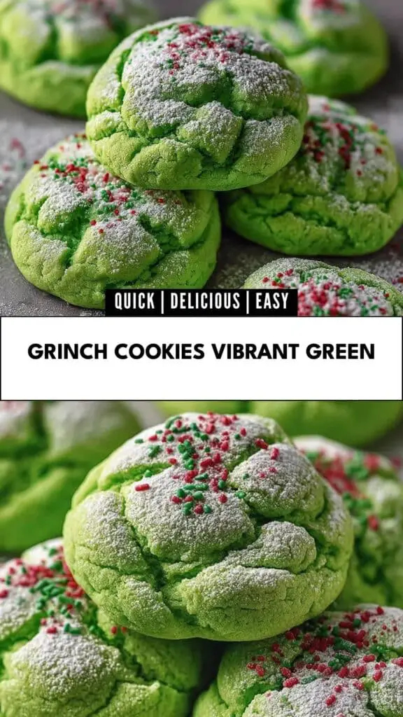 I encourage you to try this recipe and create your own memories in the kitchen. Whether you’re baking with your children, hosting a holiday gathering, or simply indulging in a sweet moment for yourself, these cookies are sure to bring smiles all around. Don’t forget to share your experiences in the comments below—I would love to hear how your Grinch Cookies Vibrant Green turned out!