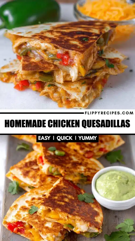 Homemade Chicken Quesadillas are a delicious staple in Mexican cuisine, embodying the vibrant flavors and culinary traditions of the region. Originating from the Spanish word “queso,” meaning cheese, quesadillas are essentially tortillas filled with cheese and other ingredients, then folded and cooked until golden brown. This dish has evolved over time, with countless variations emerging across different cultures, making it a beloved comfort food worldwide.