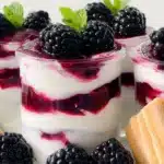 - Layer the blackberry mixture and the cream mixture in serving glasses.