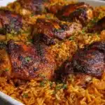 Baked Jollof Rice with Roasted Chicken