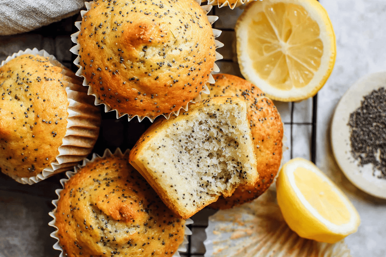 Lemon Poppy Seed Muffins are a bright, citrusy treat speckled with crunchy poppy seeds. Perfect for breakfast or an afternoon snack, they carry a hint of nostalgia and a burst of sunshine in every bite.
