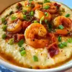 A rich, comforting Southern dish combining creamy grits with sautéed shrimp and crispy bacon, infused with bold flavors of Cajun seasoning.