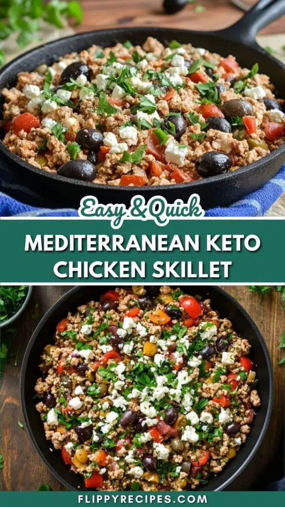 Imagine a skillet brimming with golden-brown chicken thighs, their surface glistening with olive oil, surrounded by juicy cherry tomatoes bursting with flavor. The deep purple Kalamata olives add a touch of brininess, while the crumbled feta cheese melts slightly, creating a creamy contrast. The aroma wafts through the kitchen, inviting everyone to gather around the table. This Mediterranean Keto Chicken Skillet is not just a meal; it’s a celebration of flavors that transports you to the Mediterranean coast with every bite.