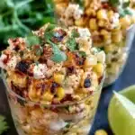 A delightful twist on elote, these Mexican Street Corn Salad Cups combine fresh corn, creamy dressing, and zesty lime in a fun, handheld serving.