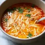 A soothing Noodle Soup made with fideo noodles, sautéed garlic, and spices, perfect for cozy evenings.