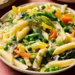 A vibrant medley of seasonal vegetables and tender pasta that creates a delightful dish celebrating nature’s bounty.