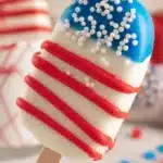 Delightful cakesicles made from leftover cake, frosting, and a sweet candy coating, perfect for celebrating patriotic occasions.