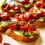 There’s something undeniably enchanting about Pesto Crostini that draws me in every time. The way the warm, toasted bread meets the vibrant layers of fresh pesto, juicy tomatoes, and creamy mozzarella creates an irresistible bite that feels like a little piece of culinary heaven. As I watch the simple ingredients come together, I’m reminded of sun-kissed Italian kitchens, where every meal is a celebration of love, flavor, and the art of cooking.
