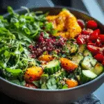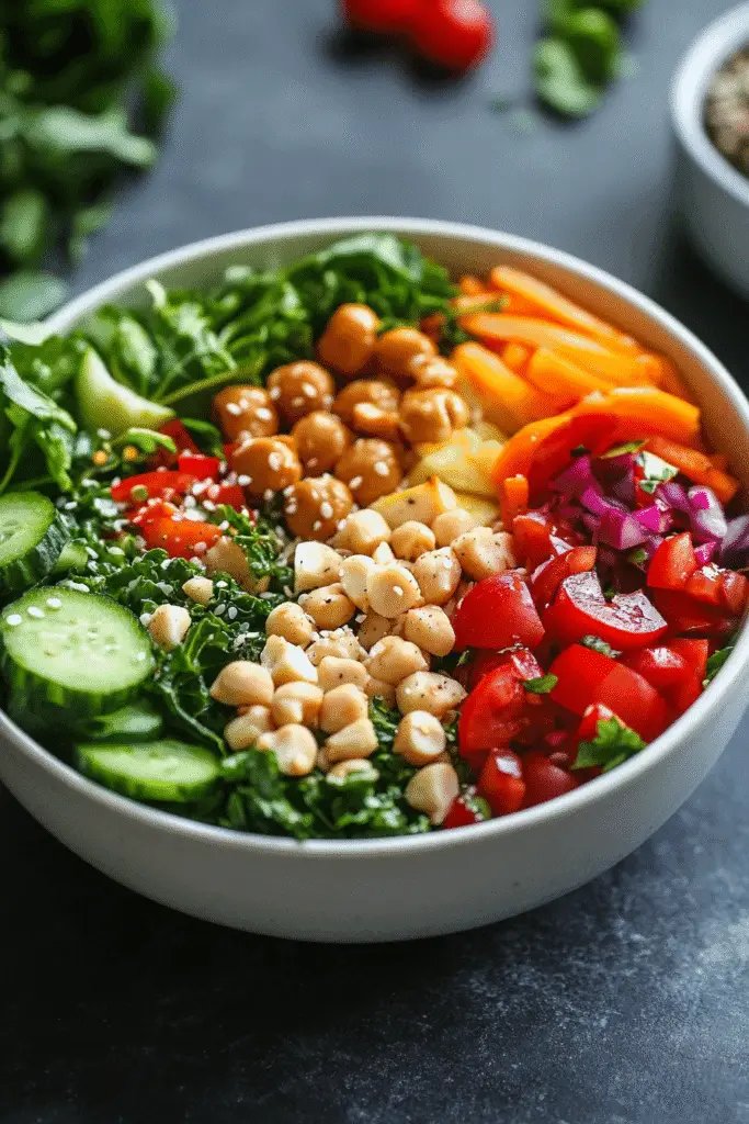 At its core, this salad celebrates the simplicity and freshness of ingredients. The use of mixed greens, cherry tomatoes, and cucumbers not only provides a delightful crunch but also showcases the beauty of seasonal produce. In many cultures, salads are a staple, often served as a refreshing side or a light main course. The Plant-Powered Greens Salad embodies this tradition while allowing for endless customization, making it a versatile choice for any meal.
