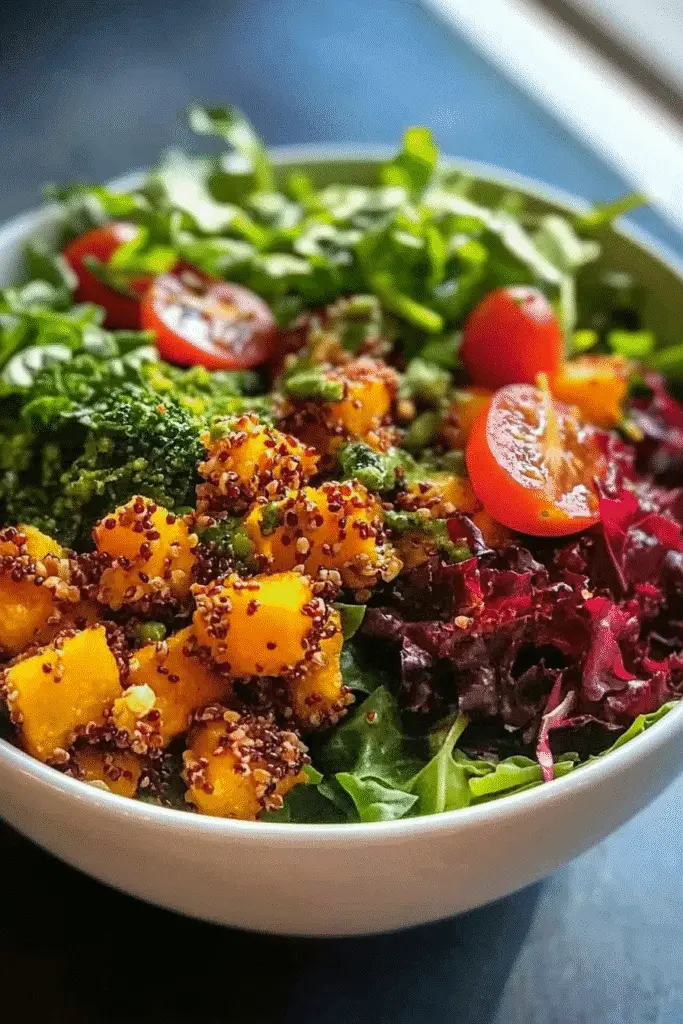 A refreshing and nutritious salad packed with greens and plant-based ingredients.