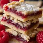 Delightful raspberry almond shortbread bars with a buttery crust and vibrant raspberry jam filling, perfect for sharing.