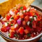 A vibrant and fresh salsa made with ripe tomatoes, jalapeños, and cilantro, perfect for adding flavor to any meal.