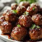Tender meatballs coated in a sticky-sweet glaze with a burst of flavor that evokes warm memories and family gatherings.