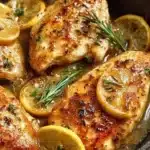 A comforting dish featuring tender chicken paired with zesty lemon, garlic, and herbs for a bright and flavorful meal.