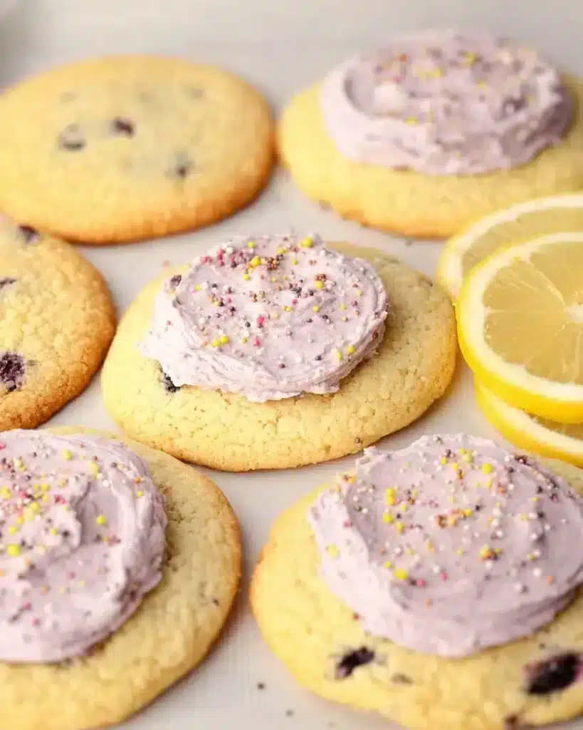 Delightful soft and chewy cookies with a refreshing burst of lemon and fresh blueberries, perfect for any occasion.