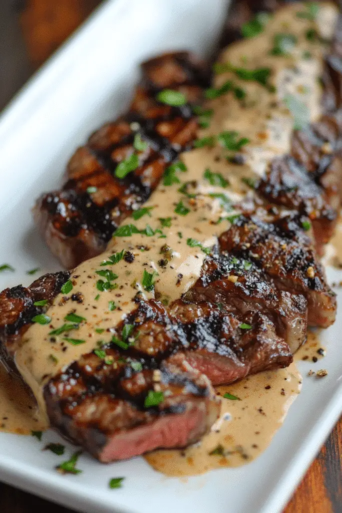 Discover the secret to a flavorful culinary delight with this delicious steak recipe featuring a rich garlic sauce.
