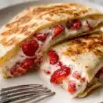 A delightful fusion of classic cheesecake flavors wrapped in warm tortillas, featuring fresh strawberries and a creamy filling.