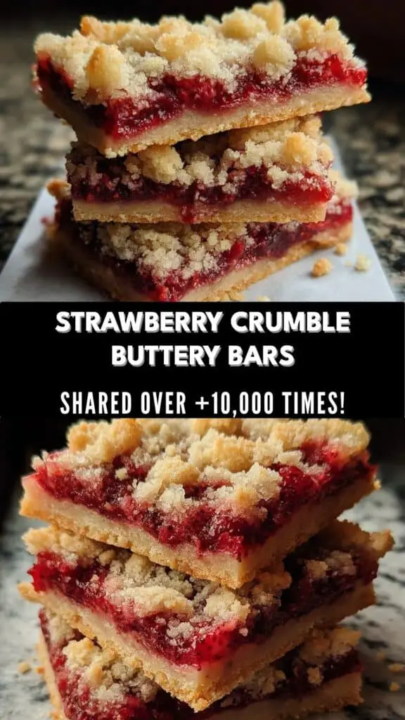 As I reflect on the joy that Strawberry Crumble Buttery Bars bring to my kitchen, I can’t help but feel a sense of warmth and connection. These bars are more than just a dessert; they are a celebration of family, love, and the simple pleasures of life. I encourage you to gather your loved ones, whip up a batch, and create your own sweet memories. If you try this recipe, I would love to hear your thoughts! Please share your experiences in the comments below, and don’t forget to spread the love by sharing this recipe with fellow food lovers!