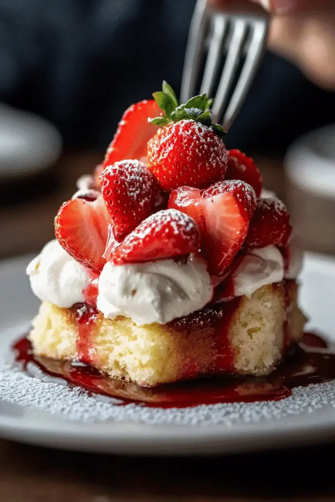 - Layer with Love: When assembling your dessert, take your time to layer the strawberries and whipped cream evenly. This not only looks beautiful but ensures that every bite is a perfect balance of cake, fruit, and cream.