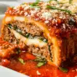 This Stuffed Italian Meatloaf is a comforting and flavorful dish made with a hearty blend of ground beef and pork, seasoned with garlic, parmesan, and Italian herbs. Filled with roasted red peppers and gooey mozzarella, every slice delivers rich Italian-inspired flavor perfect for family dinners.