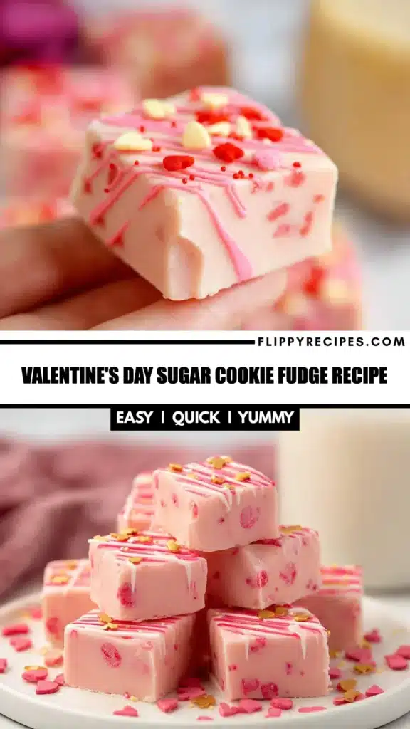 As we wrap up this delightful journey through the Valentine’s Day Sugar Cookie Fudge Recipe, I hope you feel inspired to create this sweet treat that embodies love and joy. Each square of fudge is not just a dessert; it’s a way to connect with those you cherish, sharing moments of happiness and laughter. I encourage you to gather your loved ones in the kitchen, make this fudge together, and let the sweet aroma fill your home. If you try this recipe, please share your thoughts and any creative twists you add in the comments below. Happy baking!