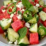The Zesty Watermelon Cucumber Tajin Salad is a vibrant ode to summer’s bounty. It’s a simple yet vibrant dish that delights the senses and perfectly captures the essence of the season. I invite you to share your thoughts on this recipe or any variations you’ve tried in the comments below. Let’s keep the conversation going about the joy of good food!